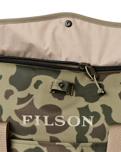 This versatile tote is made to keep gear dry through any weather. The main material is 300D polyester ripstop and the bottom boot is heavy-duty 600D polyester Oxford cloth. These fabrics are made with fully recycled material and treated with thermoplastic polyurethane (TPU) for water resistance.