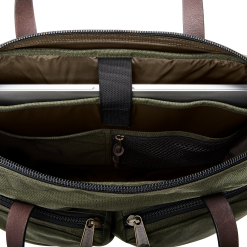 The versatile Dryden Briefcase is made of abrasion-resistant 1000D nylon that shrugs off the abuse of daily carry. This fabric is legendary for its ability to withstand abrasion and. sharing the same weave as ballistic nylon. its resistance to punctures and tears is exceptional. A padded sleeve fits laptops up to 16. The trolley strap on the back enables securing the bag over luggage handles. Features large exterior pockets for organizing quick-access essentials. Removable. adjustable shoulder strap.