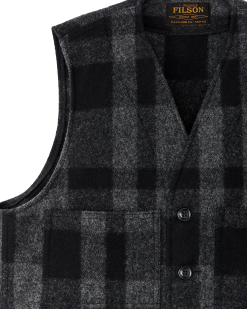Our Mackinaw Wool Vest provides warmth with excellent breathability. even when wet. Worn over a flannel shirt or under a coat. it adds warmth for comfort in the cold. Mackinaw is our iconic wool that’s provided protection from cold and wet conditions for over a century. Manufactured with an uncommonly tight weave. our signature excels at blocking the wind and withstands hard use for decades. This vest’s design works just as well indoors. whether drawing up plans for your next big project or working in a chilly warehouse. The V-shaped neckline adds no bulk around the neck. so there’s still plenty of breathing room for a heavy shirt and a rain shell zipped chin-high. The front features open and slotted chest pockets plus side-entry hand pockets.