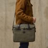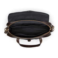 Made with our iconic Rugged Twill and Bridle Leather. the Filson Original Briefcase is built to survive any workplace. whether on land. at sea. or in the air. The lightly waxed fabric sheds water and withstands abrasion. year after year. The handles and detachable. adjustable shoulder strap are built with the same Bridle Leather that’s used for making horse tack. The roomy interior has organizational dividers and space for a 15 laptop and secures with a YKK solid brass zipper protected by a storm flap. A testament to our signature fabric’s durability. one customer recorded over one million miles of travel with his Original Briefcase.