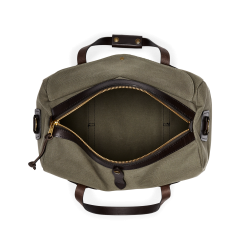 Our Rugged Twill Duffle Bags embody the philosophy that’s guided Filson since 1897. making products that are handed down rather than tossed out. The bag is made from Rugged Twill. an industrial-strength canvas from Britain’s most storied mills that is lightly waxed for water resistance. The durable Bridle Leather for the handles is strong enough for horse tack and wraps completely under the bag to cradle the heaviest loads. The solid brass zipper from YKK® is rustproof for a lifetime of dependable service. Tin Cloth canvas binding on interior seams prevents fraying and wear. Each interior endcap features a stow pocket for organizing smaller essentials and the Bridle Leather shoulder strap is detachable for hand carry. Custom sand-cast brass hardware.