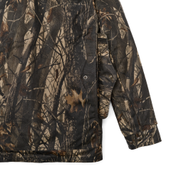 Our oil finish Tin Cloth is a tightly woven canvas duck that’s been thoroughly saturated with paraffin under high pressure and heat. This process forces the wax into the core of the cotton fibers for lasting water resistance. This Cruiser fuses Tin Cloth’s legendary durability and weather resistance with the original Realtree® Hardwoods™ camouflage pattern that we first used 25 years ago.