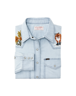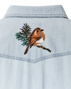 Women’s Embroidered Western Shirt – Light Indigo Chambray / Fields