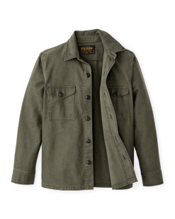With the cut of a shirt and the weight of a jacket. our original wool Jac-Shirt has been an outdoor staple since the 1970s. This cotton variation is made with densely woven Bedford cord. a durable fabric with British roots. Densely woven with a notable vertical rib. it’s been used for military uniforms and workwear for miners and railroad workers. The hem is straight for untucked wear. Chip resistant buttons secure the front and adjustable cuffs. Chest pockets are protected by buttoned flaps.
