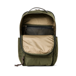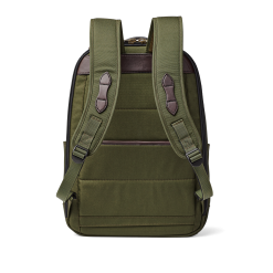 Made to withstand the abuse of travel and daily use. the versatile Filson Dryden Backpack is constructed from weather-resistant 1000D nylon for its ability to withstand long-term abrasion. With the same weave pattern as ballistic nylon. its resistance to tears and punctures is outstanding. Features a double-layer reinforced bottom for added durability. The zippered rear panel provides access to a padded pocket for laptops up to 15. Shoulder straps are ergonomically contoured for carrying comfort. Heavy-duty coil zippers.