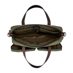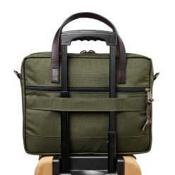 The versatile Dryden Briefcase is made of abrasion-resistant 1000D nylon that shrugs off the abuse of daily carry. This fabric is legendary for its ability to withstand abrasion and. sharing the same weave as ballistic nylon. its resistance to punctures and tears is exceptional. A padded sleeve fits laptops up to 16. The trolley strap on the back enables securing the bag over luggage handles. Features large exterior pockets for organizing quick-access essentials. Removable. adjustable shoulder strap.