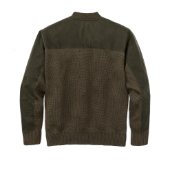 Our Henley Guide Sweater features a cape over the shoulders and arms made from our signature waxed Shelter Cloth. This water-resistant layer provides an added level of protection in wet weather. The sweater is made from 100% merino wool with tightly spun yarns for a firm surface that minimizes pilling and snags. The wool is sourced from U.S. sheep prized for their long. fine fleece. Our merino wool excels at wicking moisture to its tips for evaporation and can absorb up to 30% of its weight in water without feeling damp or clammy. This natural capillary action enables wool to insulate when wet and why it has been the fabric of choice in the outdoors for centuries. Rib-knit collar. cuffs. and hem.
