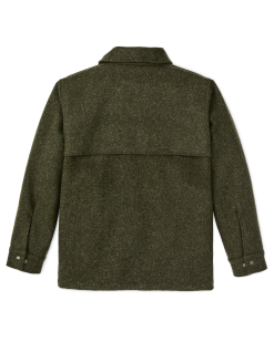 Built with Mackinaw Wool. trusted for over a century to turn back wind. snow. and rain. A cape draped over the shoulders doubles the protection across the chest and back without adding bulk through the body. The chest pockets sit beneath that cape. shielded from weather. Lower on the front. angled handwarmer pockets provide comfort and easy access. The snap-front closure is simple. fast. and glove-friendly.