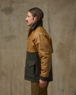 This special-edition jacket is built on the foundation of our legendary Mackinaw Wool Cruiser–patented in 1914 and trusted by foresters. sportsmen. and outdoorsmen for more than a century. Bolstered with a cape of waxed-cotton Cover Cloth across the shoulders and arms for extra defense against rain and snow.