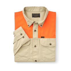 Our Sportman’s Shirt is built with the strength and utility sportsmen have expected from Filson for generations. Made of ultralight nylon that wicks sweat away from the body for comfort on the move. A blaze orange shoulder overlay aids visibility. Ideal for early-season or warm-weather hunts when blaze orange is required. Button- front and-adjustable cuffs. Knife pleats on rear shoulders for ease of motion. Button-flap chest pockets.