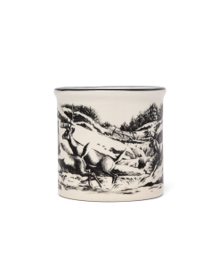 This 12-oz. mug is made in Ohio from clay that’s been kiln-fired at extremely high temperatures. The baked-on enamel glaze is safe for both the microwave and dishwasher. Features custom graphics.