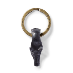 Our custom Wolf Head Key Fob is made exclusively for Filson by the same blacksmith who made the door handles to our headquarters building. Located in the Seattle region. Darryl is dedicated to the art of blacksmithing and with over 30 years of experience. he teaches the craft to keep it alive and thriving. Hand-forged from iron stock. each key fob is unique. with subtle variations. The custom. Filson logo ring is engraved solid brass. This special fob will tell the story of the Northwest wild for as long as you have keys to carry.