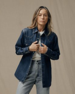 Our Denim Western Shirt is made with 11.5-oz. 100% cotton denim. the classic workwear fabric made famous on ranches and now an everyday staple. The tightly woven warp-face twill has durability for decades of service. Pointed front and back yokes provide a distinct flair. The front. pocket flaps. and cuffs secure with snaps. traditional for Western shirts. The fit is comfortably relaxed. with a slightly curved hemline.