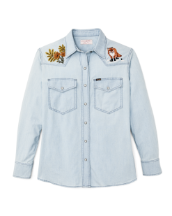Women’s Embroidered Western Shirt – Light Indigo Chambray / Fields
